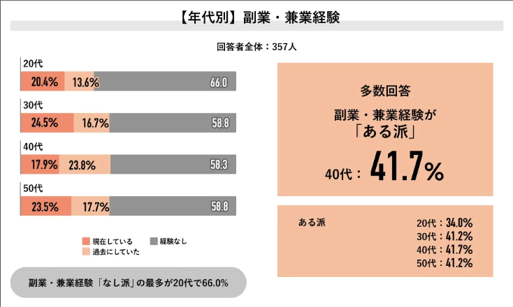 出典:副業経験者4割・希望者7割超 Job総研「2025年 副業・兼業の実態調査」 https://job-q.me/articles/15843