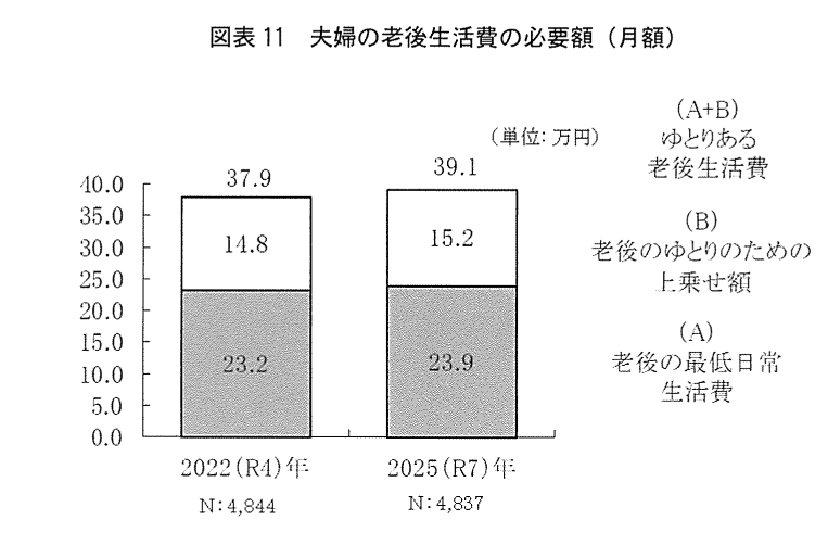 出典:老後最低生活費 月23.9万円 生命保険文化センター「2025年度 生活保障に関する調査」 https://www.jili.or.jp/files/press/seikatuhoshouchousa_2025sokuhouban_PressRelease.pdf